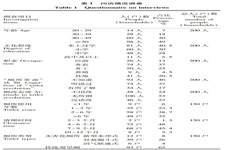 研究的数据来源主要是通过对范集镇下的85个自然村内的住户进入农村家庭进行问访调查、统计数据。深入家庭的调查问访能够更具体的了解实际情况,更加直观的反映出问题所在。在该镇做调查时,一共进入150户家庭,共200人(入户及路边)进行问访。问访情况如表1。