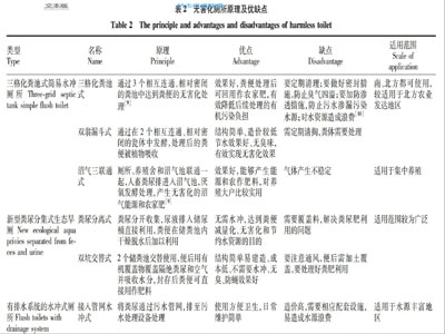 “厕所革命”就是要改变以往厕所脏、乱、差的状况,因此就要进 行对以往传统旱厕的改造进行无害化厕所建设。目前无害化厕所格式大概可分为3个大类:三格化粪池式、新型粪尿分集式、有排水系统的水冲式(表2)。